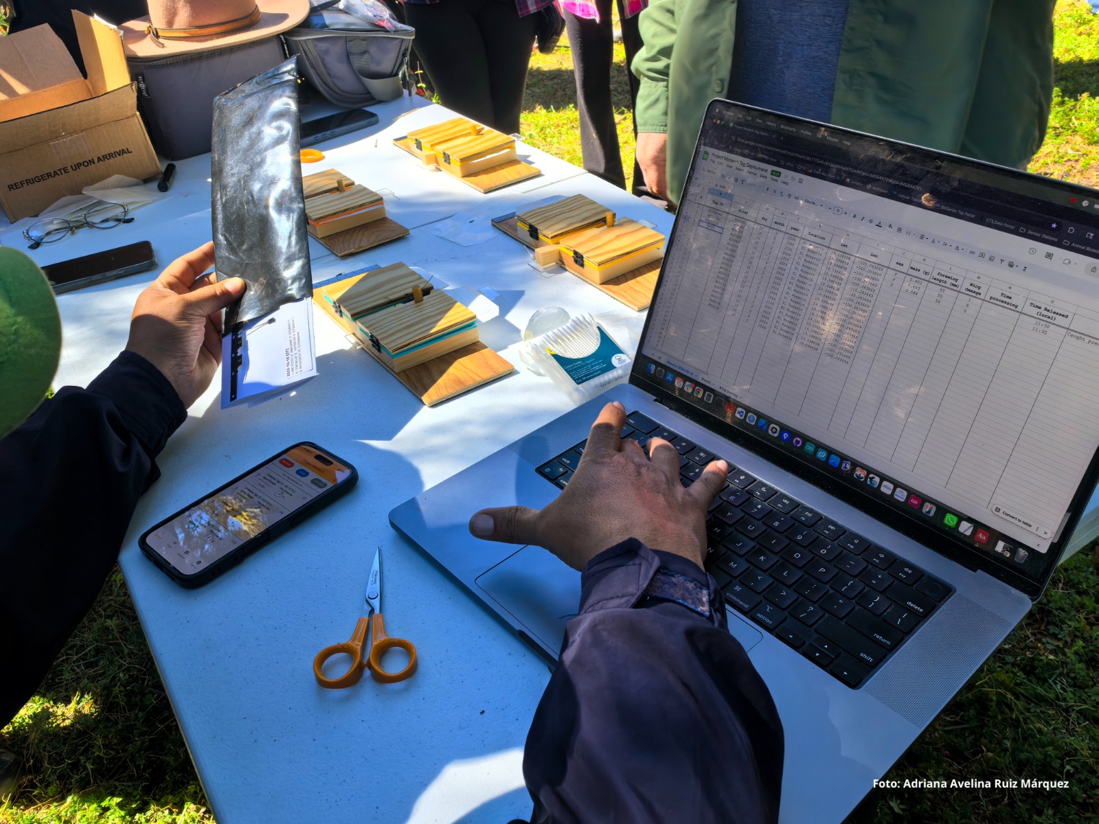 A cada sensor se le asignó un código único vinculado al santuario de origen, por ejemplo, del ROS001 al ROS040 para El Rosario, lo que permite un seguimiento individual en la base de datos. Finalmente, todas las mariposas fueron liberadas sin ningún tipo de daño.